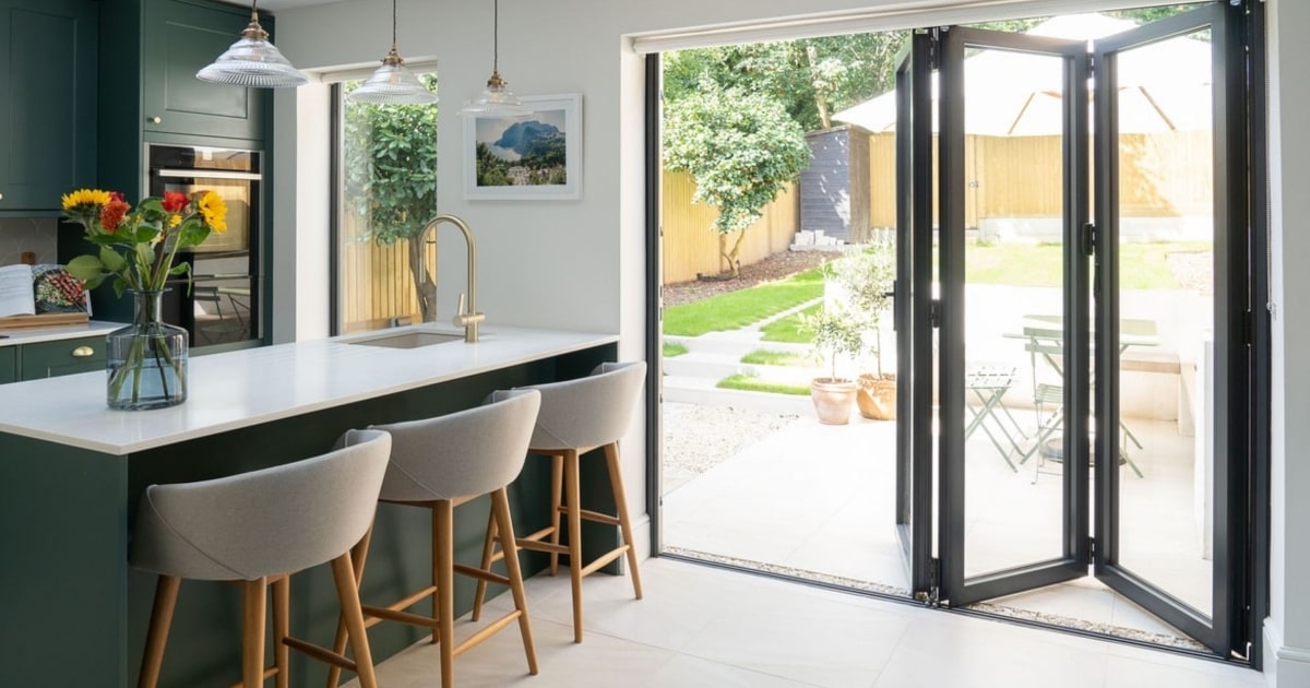 Create open, airy living spaces with aluminium bifolding doors. Perfect for kitchen extensions and garden rooms.